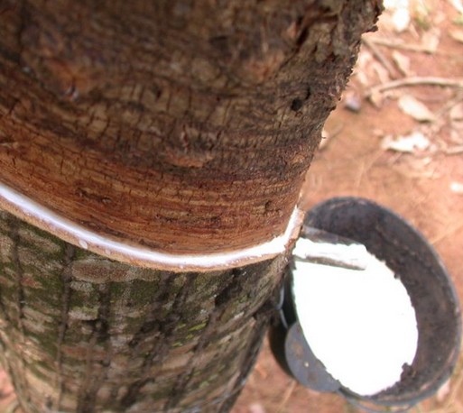 世界上約有2000種不同的植物可生產(chǎn)類似天然橡膠的聚合物,已從其中500種中得到了不同種類的橡膠,但真正有實(shí)用價(jià)值的是巴西三葉橡膠樹。橡膠樹的表面被割開時(shí),樹皮內(nèi)的乳管被割斷,膠乳從樹上流出。從橡膠樹上采集的乳膠,經(jīng)過稀釋后加酸凝固、洗滌,然后壓片、干燥、打包,即制得市售的天然橡膠。天然橡膠根據(jù)不同的制膠方法可制成煙片、風(fēng)干膠片、縐片、技術(shù)分級(jí)干膠和濃縮膠乳等。